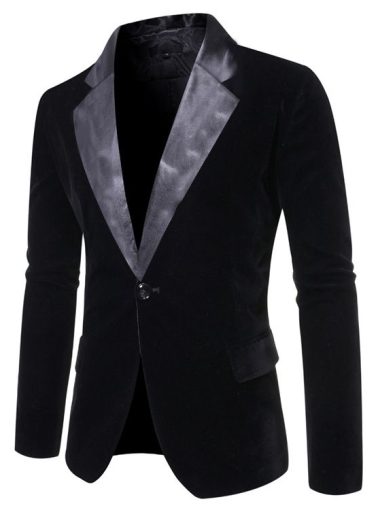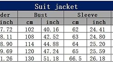 Details:Texture: Polyester fibre; soft; lightweight; skin-friendly; gives you a comfortable wearing and perfect experience through a year.Pattern: The collar of this men’s jacket set is a classic suit collar with one button; long sleeves and round hem; with golden waves and British style.Occasions: Casual suit coat is especially suitable for parties; hotels; rock; hip-hop; dinners…