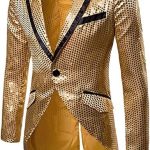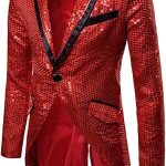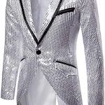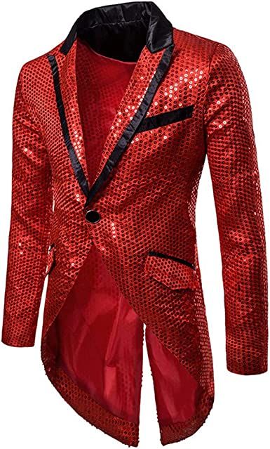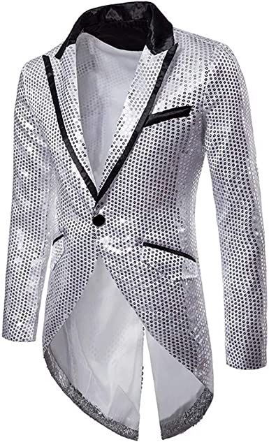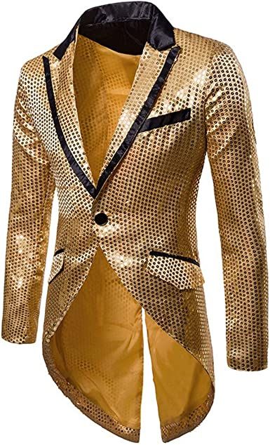 Material: 70% Polyurethane+30% Polyester fabric ; shiny sequin; feel comfortable and breathable when wearing.DESIGN: One button closure; peaked lapel; center vent; 2 flap hand pockets; 1 fake chest pocket; Very gentleman's shiny sequin tuxedo.OCCASION: Ornate sequin swallowtailed suit blazer suitable for party; event; celebration; prom; banquet; show; performance; and other special occasions; magician event and show etc.CARE INSTRUCTION: Dry clean or hand wash recommended;Wash in cold water;Avoid prolonged exposure under sunlight.Package including:1* Sequin Blazer. Items are slightly smaller than expected; please choose the bigger size ; We offer 4 sizes ( S / M / L / XL ); If you have any questions about size; please feel free to contact us.