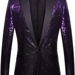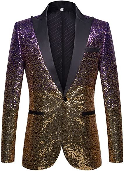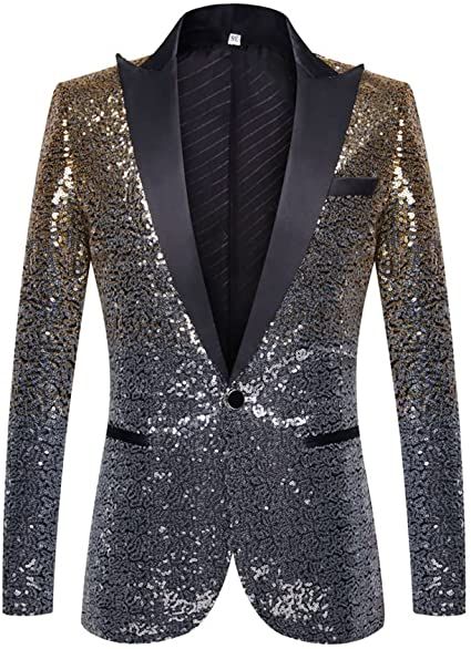 Single-breastedFabric: This suit is made of high yarn fabric; and the texture is delicate soft; and smooth texture. Skin-friendly and smooth fabrics are a suit choice.Design: One-button closed; classic design; full coat is decorated by sequins; 2 pockets on the side; 1 fake pocket; stylish style design; let you fully show the charm of men.Occasion & match: This suit can be worn with all kinds of tie bows; black pants and shirts.Suitable for dances; celebrations; festivals; banquets; performances; etc.Warm Tips: Please pay attention to our size chart; generally we'll suggest our customer to choose the size based on the Shoulder and Chest.If you have any questions and suggestions; please feel free to consult.We will deal with it as soon as possible.
