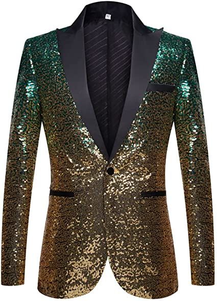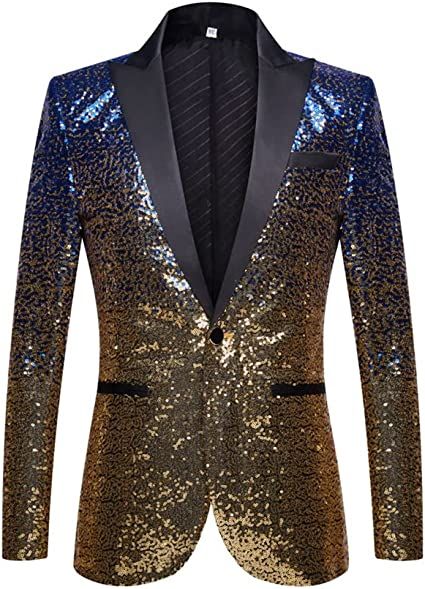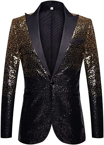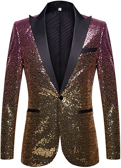 Single-breastedFabric: This suit is made of high yarn fabric; and the texture is delicate soft; and smooth texture. Skin-friendly and smooth fabrics are a suit choice.Design: One-button closed; classic design; full coat is decorated by sequins; 2 pockets on the side; 1 fake pocket; stylish style design; let you fully show the charm of men.Occasion & match: This suit can be worn with all kinds of tie bows; black pants and shirts.Suitable for dances; celebrations; festivals; banquets; performances; etc.Warm Tips: Please pay attention to our size chart; generally we'll suggest our customer to choose the size based on the Shoulder and Chest.If you have any questions and suggestions; please feel free to consult.We will deal with it as soon as possible.